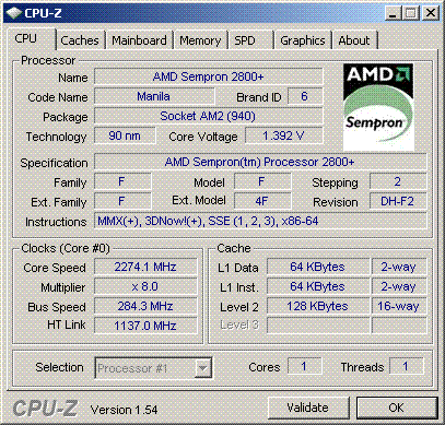 Результат разгона AMD Sempron (Manila)