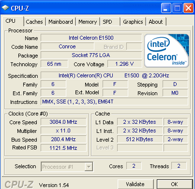 Результат разгона Intel Celeron (Conroe-512)