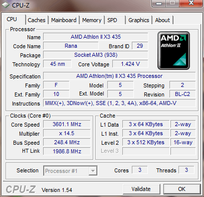 | Процессор (ядро) | AMD Athlon II X3 (Rana) |