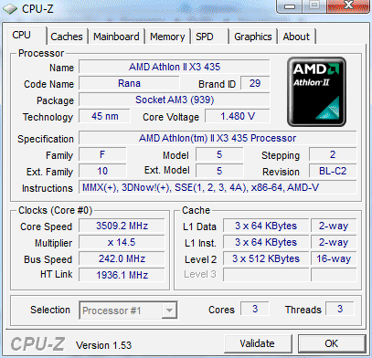 | Процессор (ядро) | AMD Athlon II X3 (Rana) |