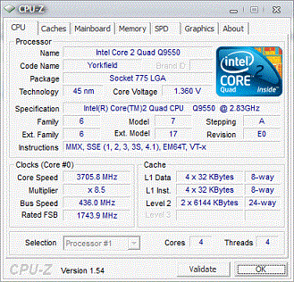 Результат разгона Intel Core 2 Quad (Yorkfield)