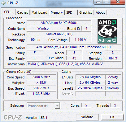 | Процессор (ядро) | AMD Athlon 64 X2 (Windsor) |