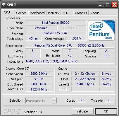 Результат разгона Intel Pentium Dual-Core (Wolfdale-2M)