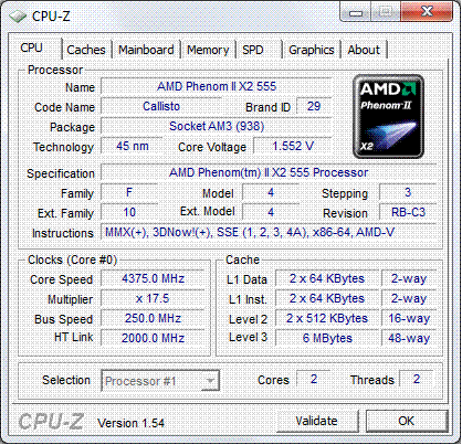 | Процессор (ядро) | AMD Phenom II X2 (Callisto) |