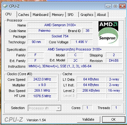 Результат разгона AMD Sempron (Palermo)