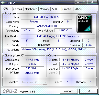 | Процессор (ядро) | AMD Athlon II X4 (Propus) |