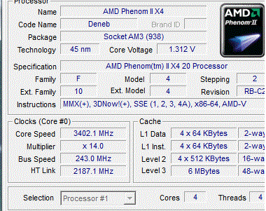 | Процессор (ядро) | AMD Phenom II X3 (Heka) |