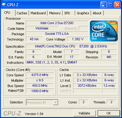 Результат разгона Intel Core 2 Duo (Wolfdale)