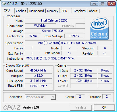 Результат разгона Intel Core 2 Duo (Wolfdale)