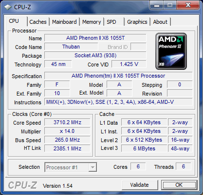 | Процессор (ядро) | AMD Phenom II X6 (Thuban) |