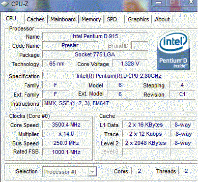 | Процессор (ядро) | Intel Pentium D (Presler) |