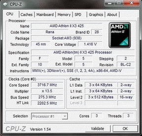 | Процессор (ядро) | AMD Athlon II X3 (Rana) |