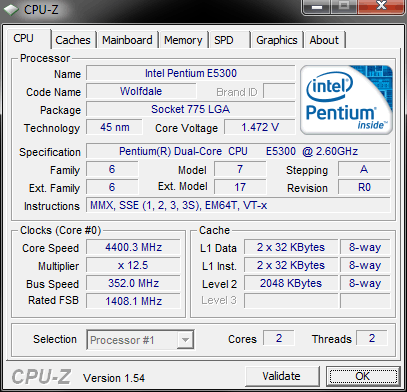 Результат разгона Intel Pentium Dual-Core (Wolfdale-2M)