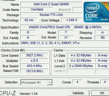 Результат разгона Intel Core 2 Quad (Yorkfield)