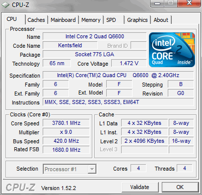 Результат разгона Intel Core 2 Quad (Kentsfield)