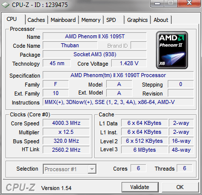 | Процессор (ядро) | AMD Phenom II X6 (Thuban) |