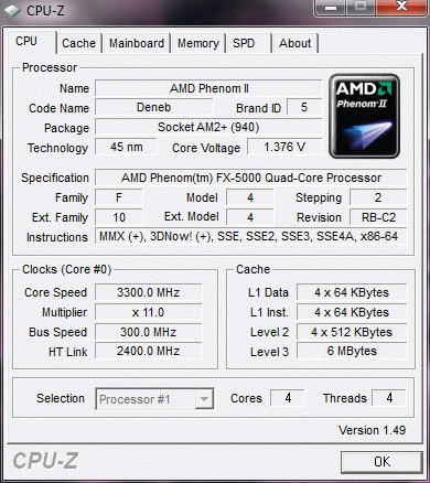 | Процессор (ядро) | AMD Phenom II X4 (Deneb) |