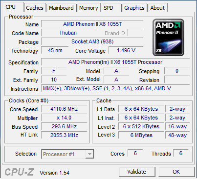 | Процессор (ядро) | AMD Phenom II X6 (Thuban) |