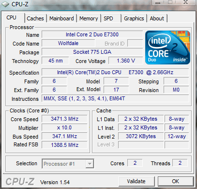 | Разгон, максимально стабильная частота (FSB x Ratio) | 3470 (347 x 10.0) |