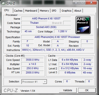 | Процессор (ядро) | AMD Phenom II X6 (Thuban) |