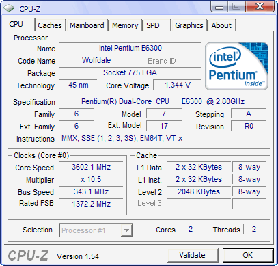 Результат разгона Intel Pentium Dual-Core (Wolfdale-2M)