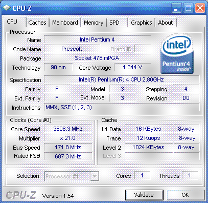 Результат разгона Intel Pentium 4 (Prescott)