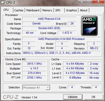 Результат разгона AMD Phenom II X4 (Deneb)