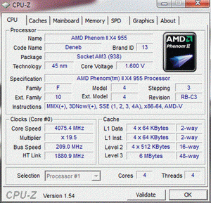 | Процессор (ядро) | AMD Phenom II X4 (Deneb) |