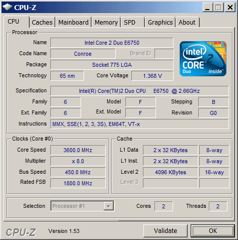 Результат разгона Intel Core 2 Duo (Conroe)
