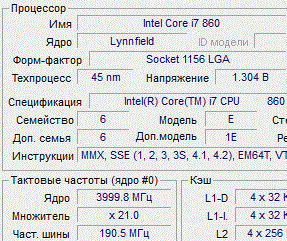 | Процессор (ядро) | Intel Core i5/i7 (Lynnfield) |