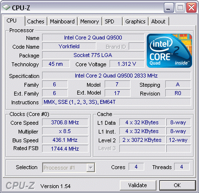 Результат разгона Intel Core 2 Quad (Yorkfield)
