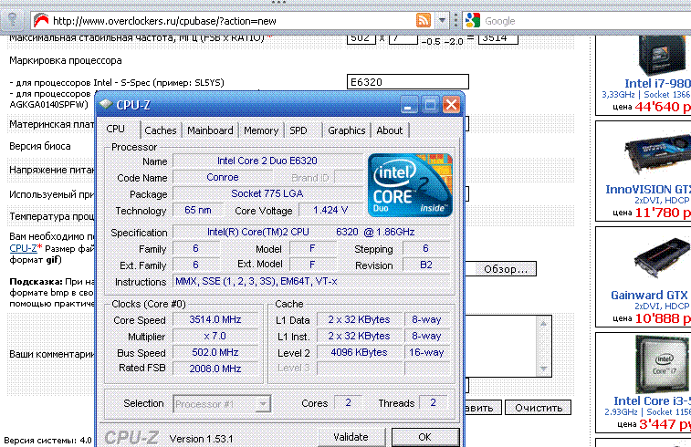 Результат разгона Intel Core 2 Duo (Conroe)