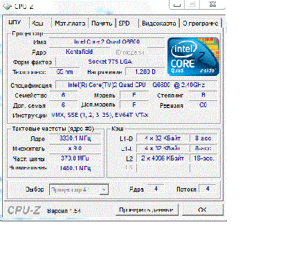 | Процессор (ядро) | Intel Core 2 Quad (Kentsfield) |