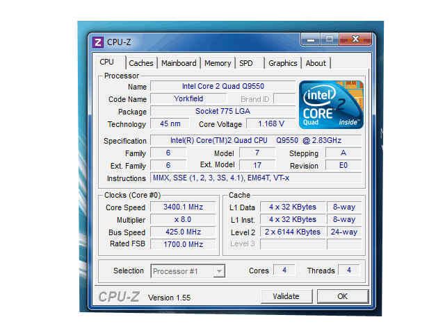 | Процессор (ядро) | Intel Core 2 Quad (Yorkfield) |
