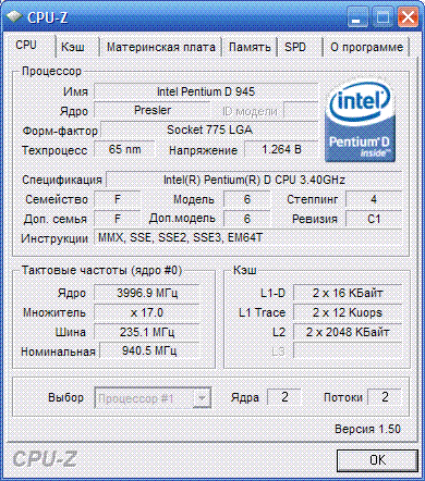 Результат разгона Intel Pentium D (Presler)