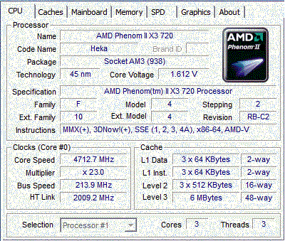| Процессор (ядро) | AMD Phenom II X3 (Heka) |