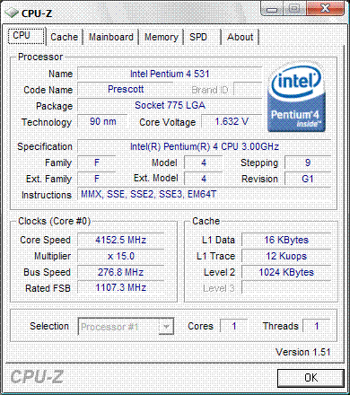 | Процессор (ядро) | Intel Pentium 4 (Prescott) |