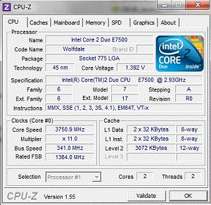 | Разгон, максимально стабильная частота (FSB x Ratio) | 3751 (341 x 11.0) |