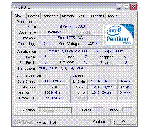 Результат разгона Intel Pentium Dual-Core (Wolfdale-2M)