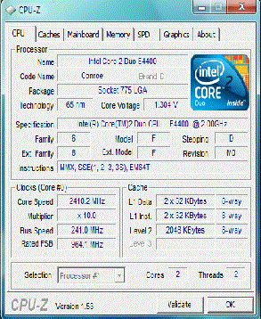 | Разгон, максимально стабильная частота (FSB x Ratio) | 2410 (241 x 10.0) |