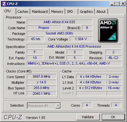 | Процессор (ядро) | AMD Athlon II X4 (Propus) |