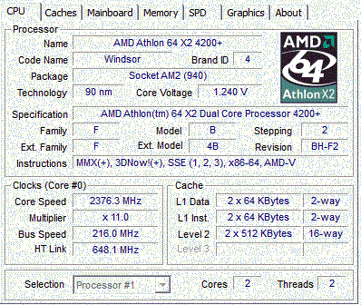 | Процессор (ядро) | AMD Athlon 64 X2 (Windsor) |