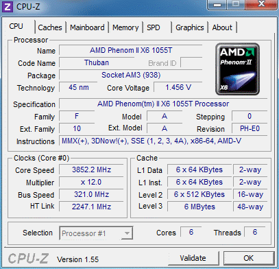 | Процессор (ядро) | AMD Phenom II X6 (Thuban) |