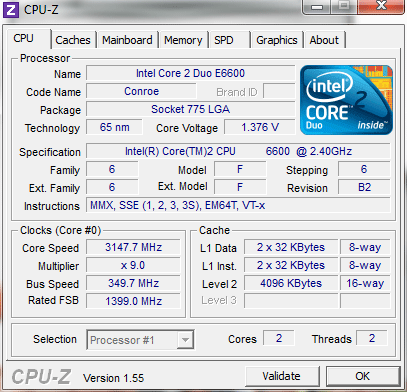 | Процессор (ядро) | Intel Core 2 Duo (Conroe) |