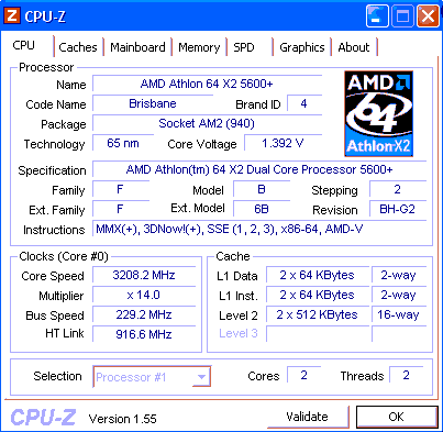 Результат разгона AMD Athlon 64 X2 (Brisbane)