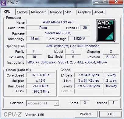 | Процессор (ядро) | AMD Athlon II X3 (Rana) |