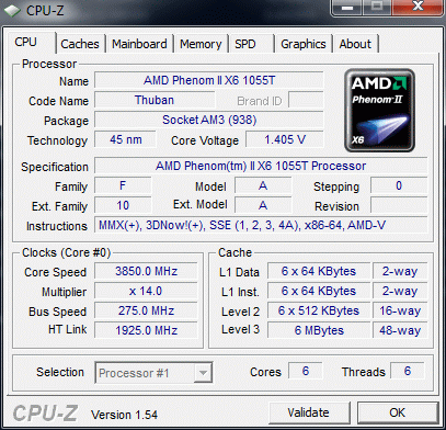 | Процессор (ядро) | AMD Phenom II X6 (Thuban) |
