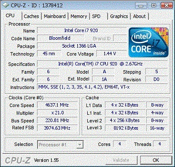 | Разгон, максимально стабильная частота (FSB x Ratio) | 4641 (221 x 21.0) |