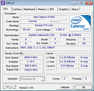 Результат разгона Intel Celeron (Conroe-512)