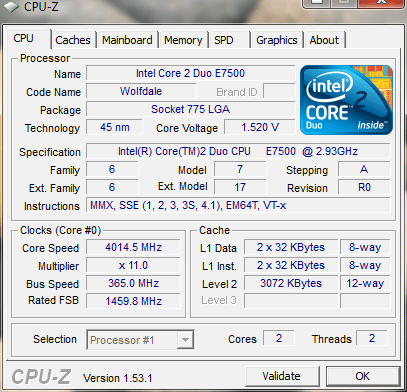 Результат разгона Intel Core 2 Duo (Wolfdale)